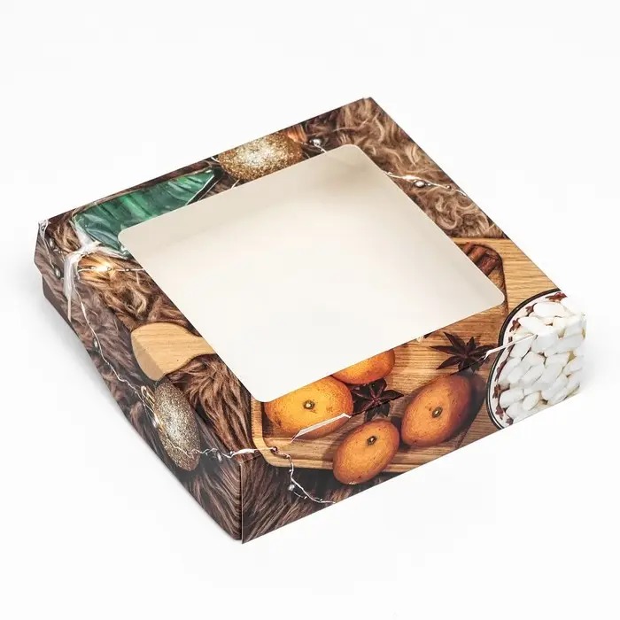 Коробка подарочная новогодняя складная с окном «Фрукты», 15×15×4 см