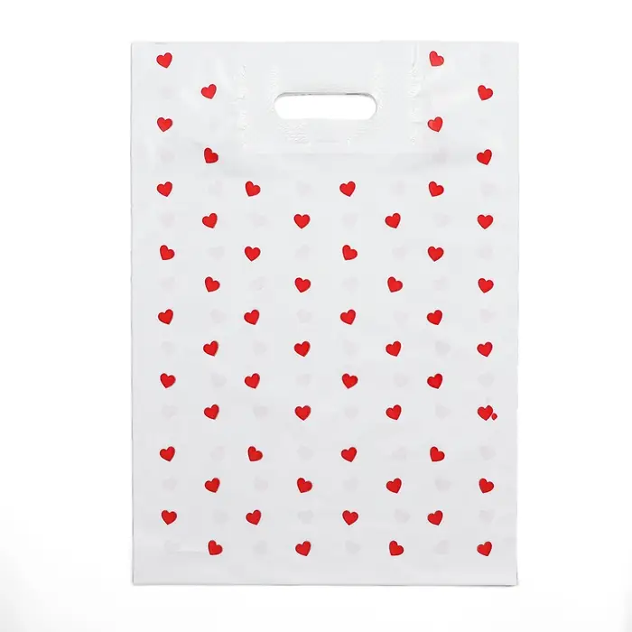 Пакет полиэтиленовый с вырубной усиленной ручкой, «Сердечки» 30×40 см, 50 мкм