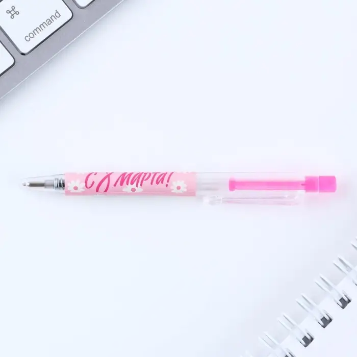 Ручка шариковая, синяя паста, 0.5 мм, автоматическая мини «С 8 марта!»