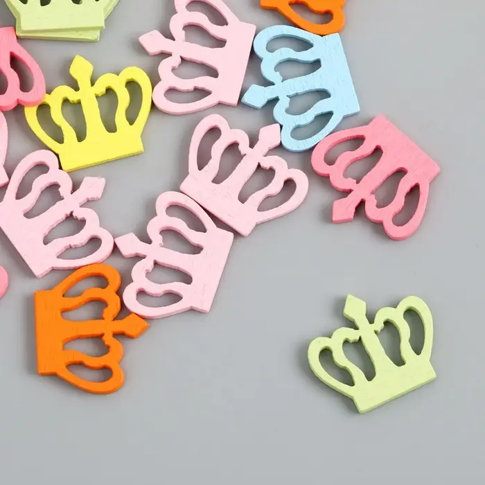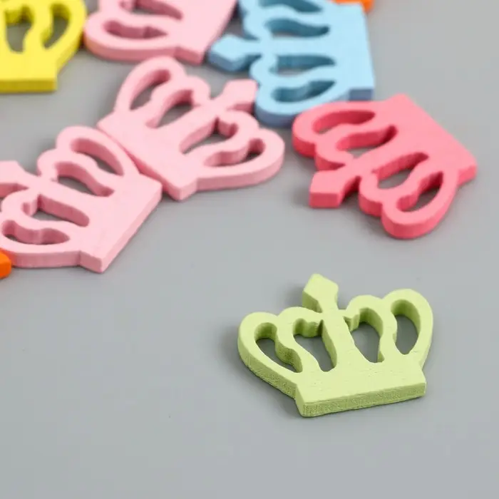 Декор для творчества дерево "Короны" летние цвета набор 20 шт 2х2,2х0,3 см