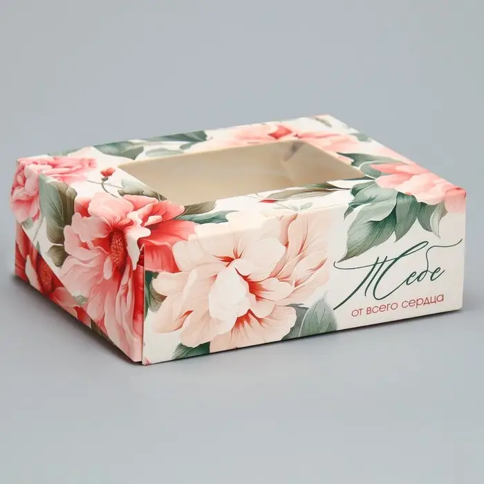 Кондитерская упаковка, коробка с ламинацией «Цветочный», 10 х 8 х 3.5 см