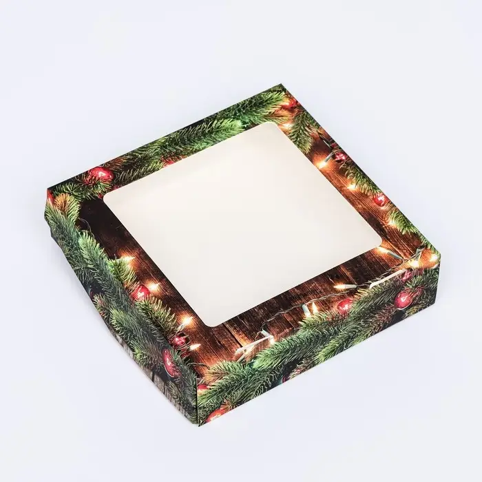 Коробка подарочная новогодняя складная с окном «Огни», 15×15×4 см