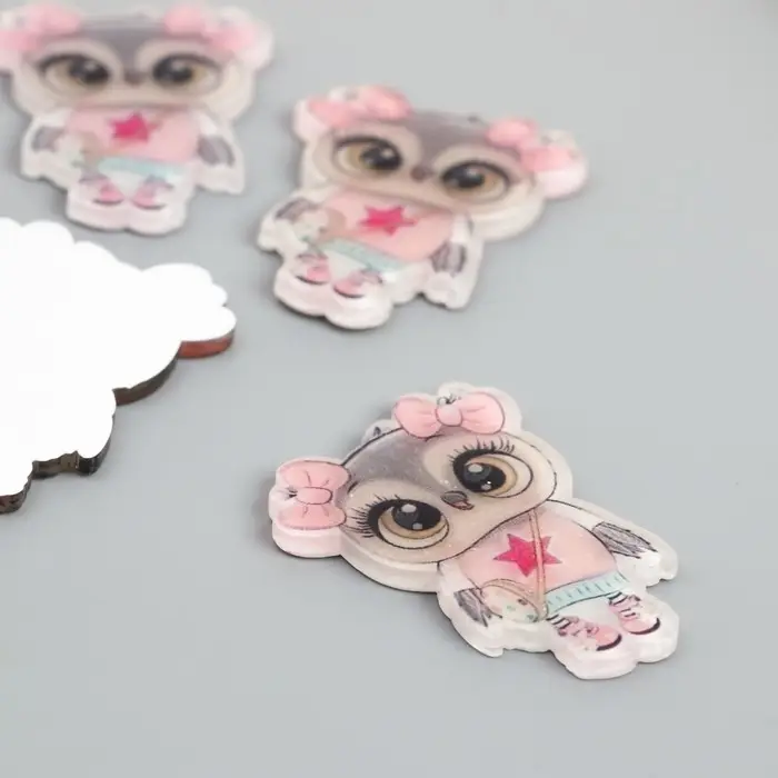 Декор для творчества акрил "Совушка в розовом свитере с сумкой" 2,7х3,7 см