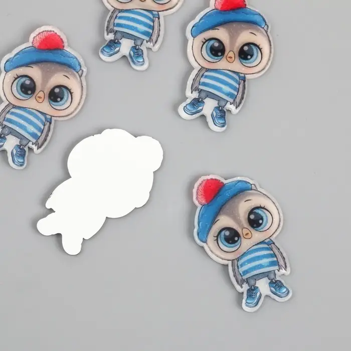 Декор для творчества акрил "Совёнок в полосатой майке и берете" 2,4х3,7 см