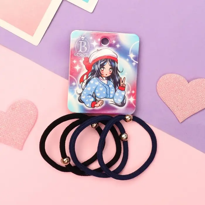 Резинка для волос "Комиксы" (набор 4 шт) девчонка шляпка, 5 см, чёрный синий