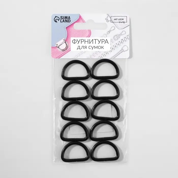 Полукольцо для сумок, d=20 мм, толщина - 3 мм, 10 шт., матовое, чёрное
