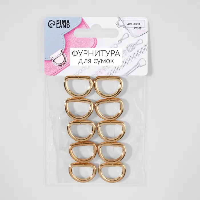 Полукольцо для сумок, d=15 мм, толщина - 3 мм, 10 шт., цвет золотой