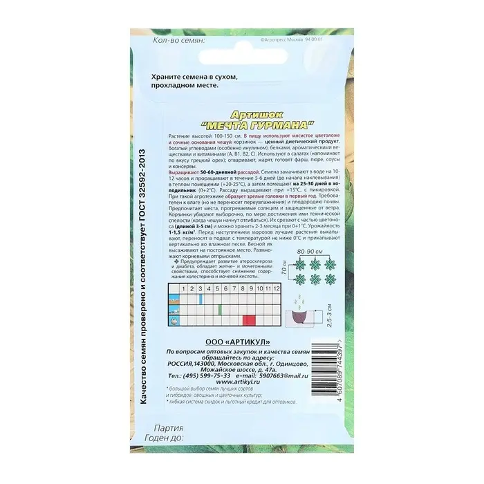 Семена Зелень "Артишок Красавец", ц/п, 0,5 гр.