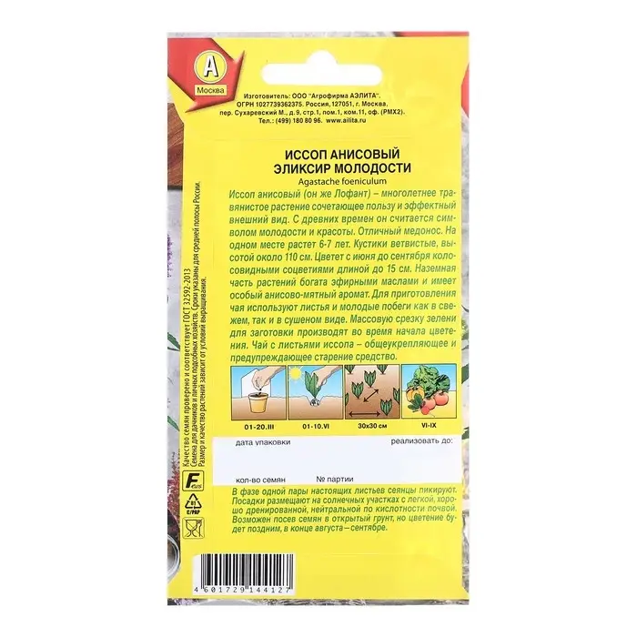 Семена Иссоп анисовый Эликсир молодости Целебный чай Ц/П 0,05г