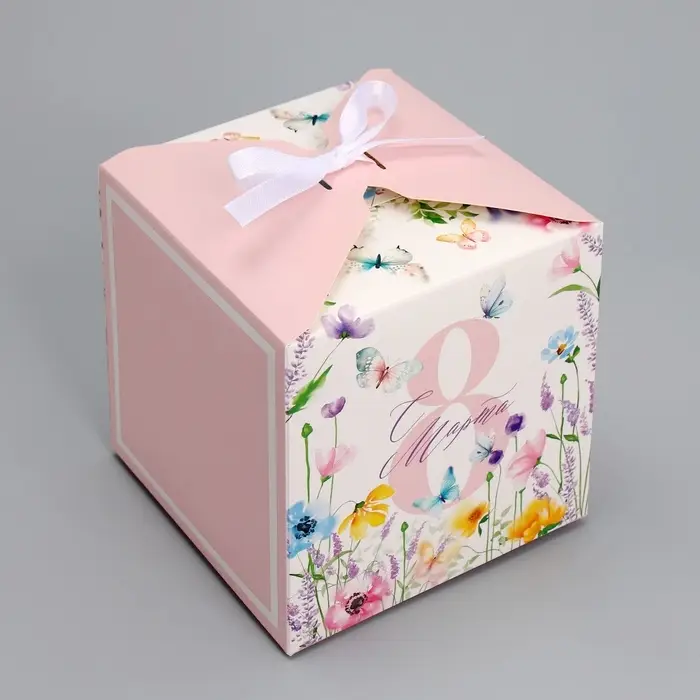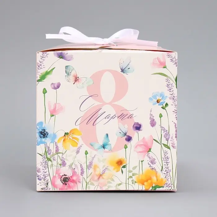 Коробка подарочная складная, упаковка, «С 8 Марта, нежные цветы», 12 х 12 х 12 см