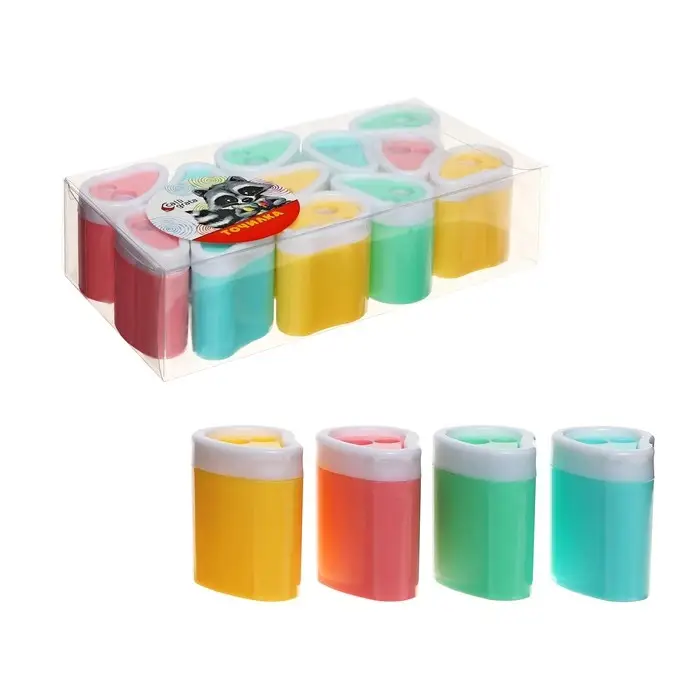 Точилка двойная «Пастель», с контейнером, МИКС