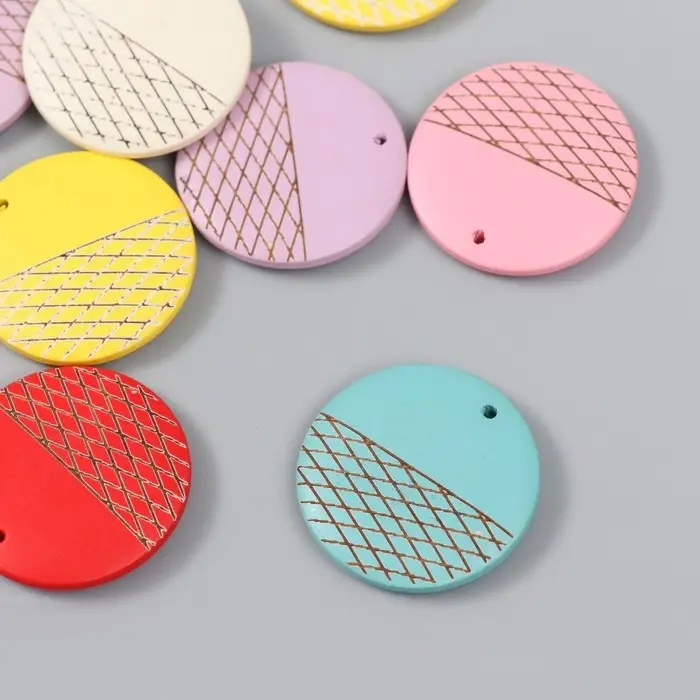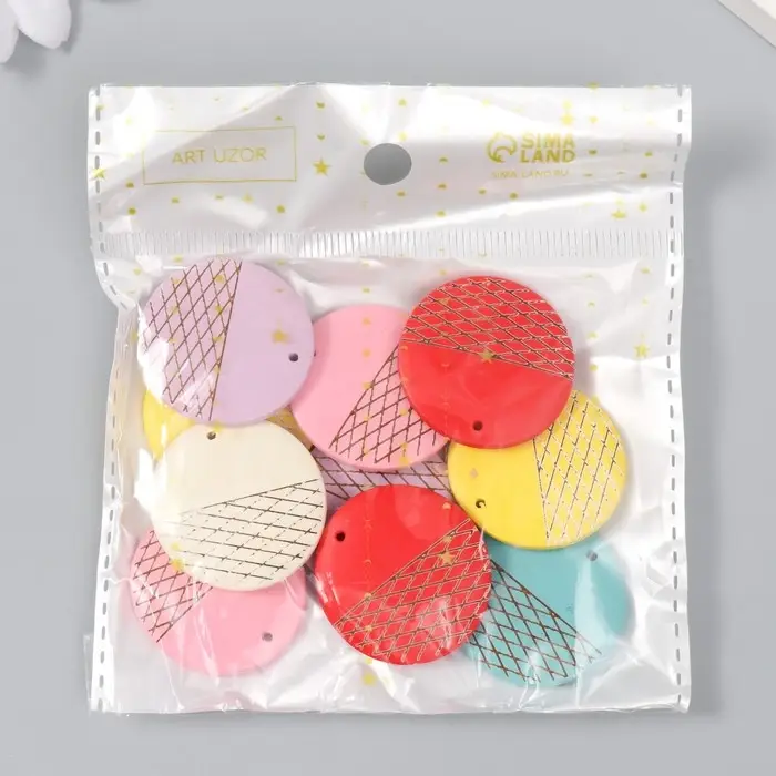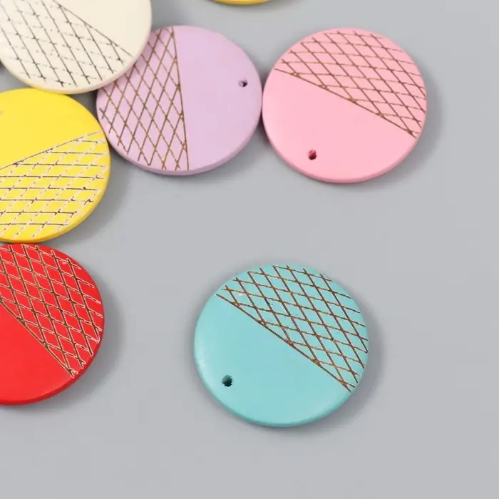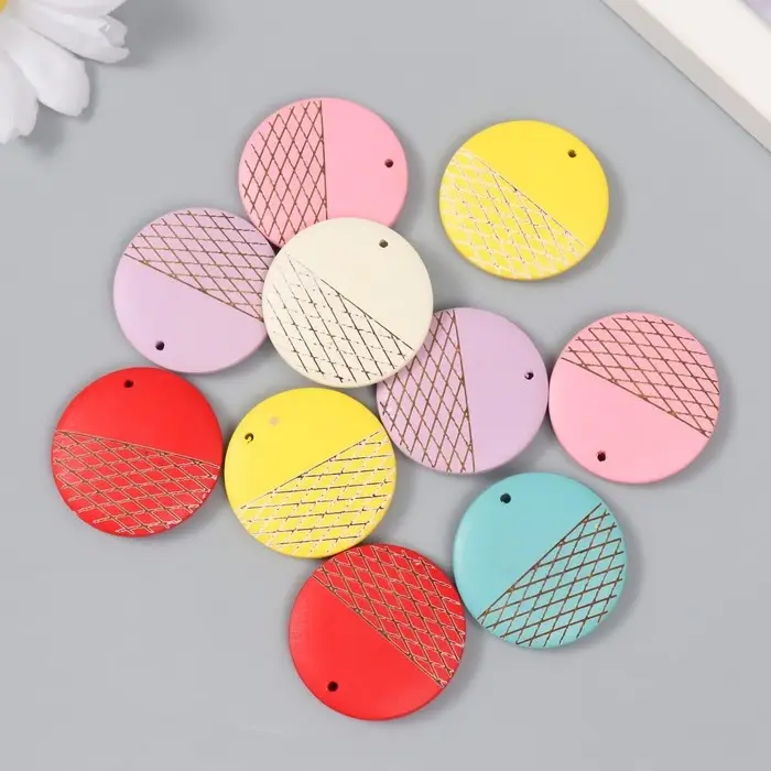 Декор для творчества дерево "Круг с золотой сеткой" МИКС 3х3х0,5 см