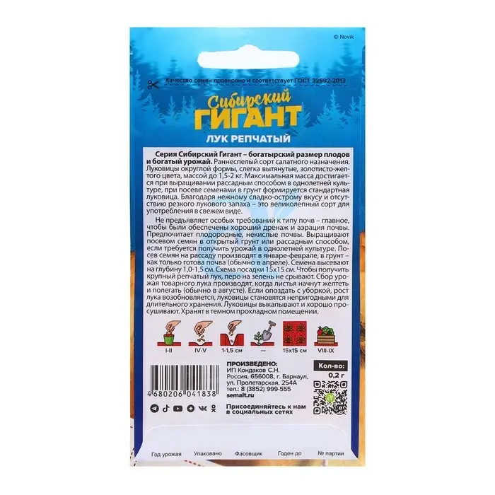 Семена Лук "Сибирский Гигант", ц/п, 0,2 гр.