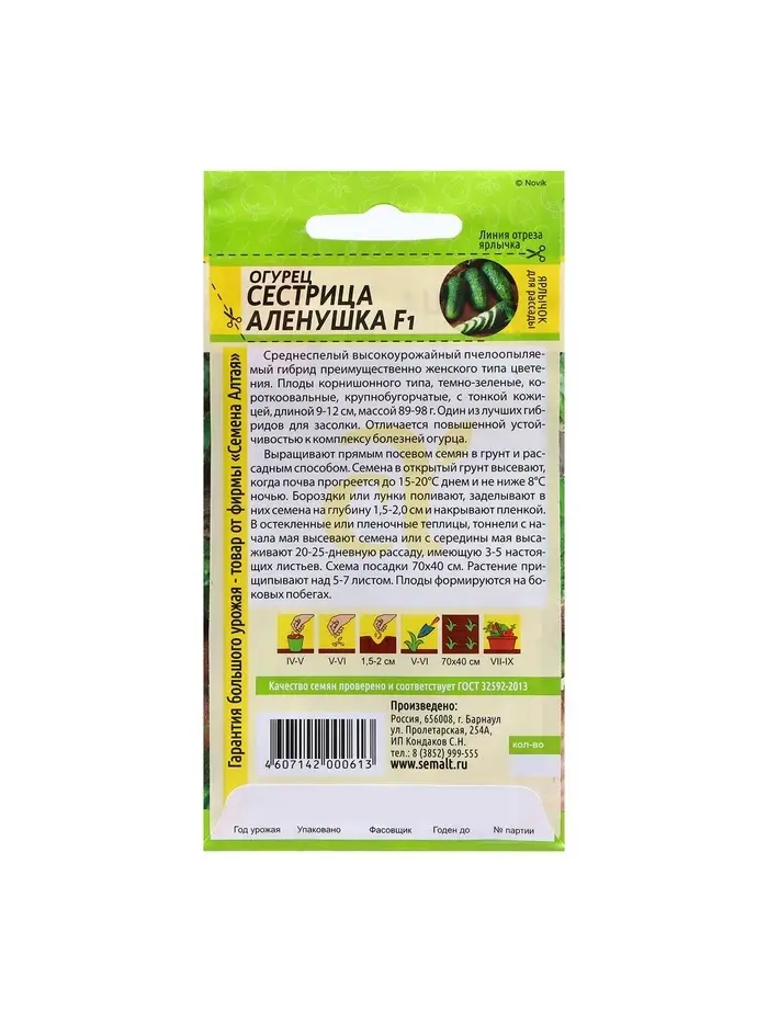 Семена Огурец Сестрица Аленушка F1/Сем Алт/цп 0,3 гр,