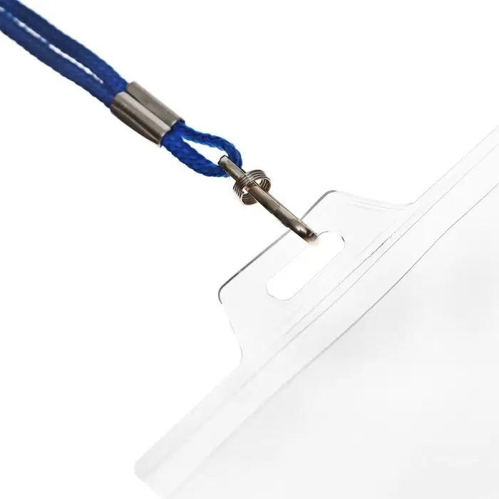 Идеальный аксессуар для офисной жизни Горизонтальный бейдж с синим шнурком – это важный инструмент для вашего бизнеса или мероприятия. Прочная конструкция и классический дизайн делают его незаменимым атрибутом для идентификации сотрудников и участников.