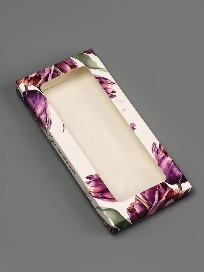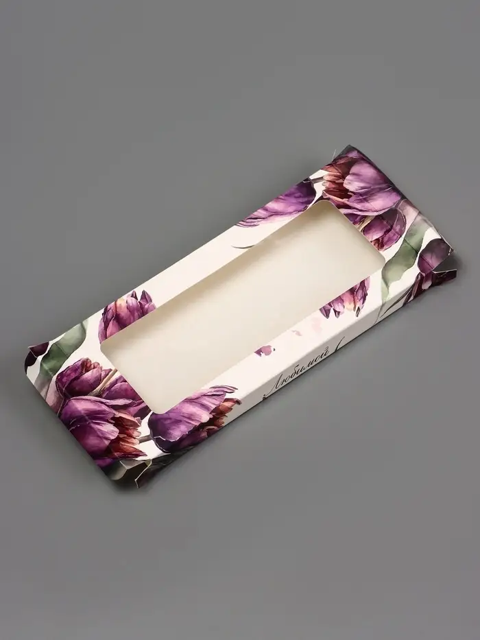 Изысканная подарочная коробка, созданная для особых моментов. Эта упаковка предназначена для плитки шоколада и впечатляет стильным окном, позволяющим замечать красоту шоколадного произведения и делает подарок ещё более привлекательным. Отличный выбор для тех, кто ценит не только вкус, но и визуальное восхищение. Подойдет для упаковки шоколада ручной работы.