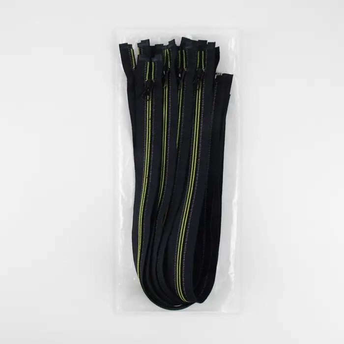 Бегунок плавно перемещается по зубчикам. Молния является разъёмной — замочек на конце полностью расстёгивается. Номер обозначает ширину зубчиков в миллиметрах. Чаще всего такую застёжку используют для шитья толстовок, спортивных вещей, туристического снаряжения и многого другого.