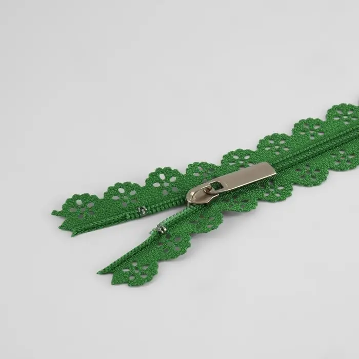 Молния «Спираль», №3, неразъёмная, ажурная, замок автомат, 50 см, зелёная