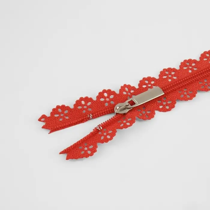Молния «Спираль», №3, неразъёмная, ажурная, замок автомат, 50 см, красная