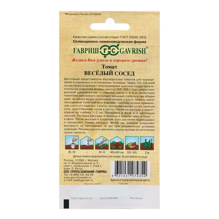 - Длительный срок годности семян — 4 года — обеспечивает запас на несколько сезонов.