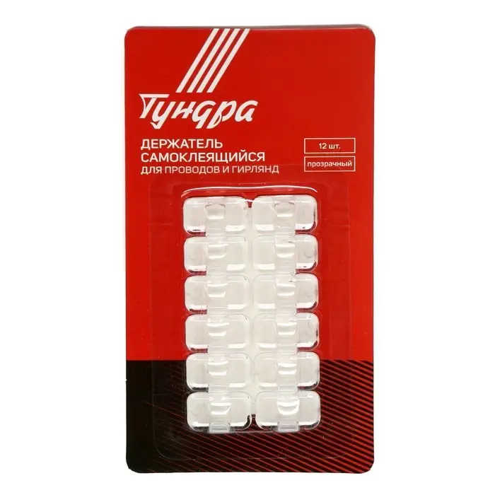 Держатель самоклеящийся для проводов и гирлянд ТУНДРА krep, прозрачный, 12 шт.