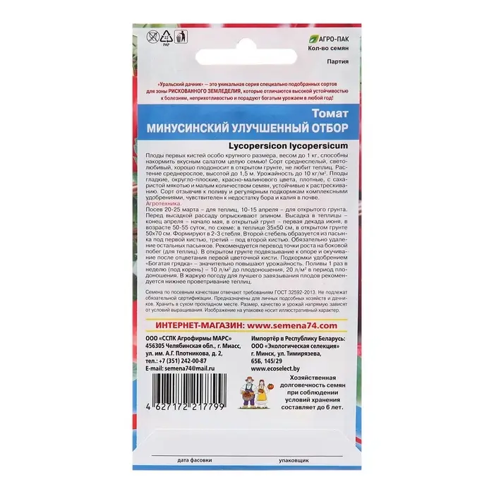 Семена Томат "Минусинский", улучшенный отбор, детерминантный,среднерослый 20 шт