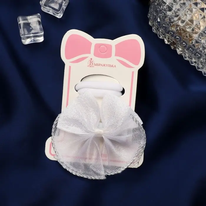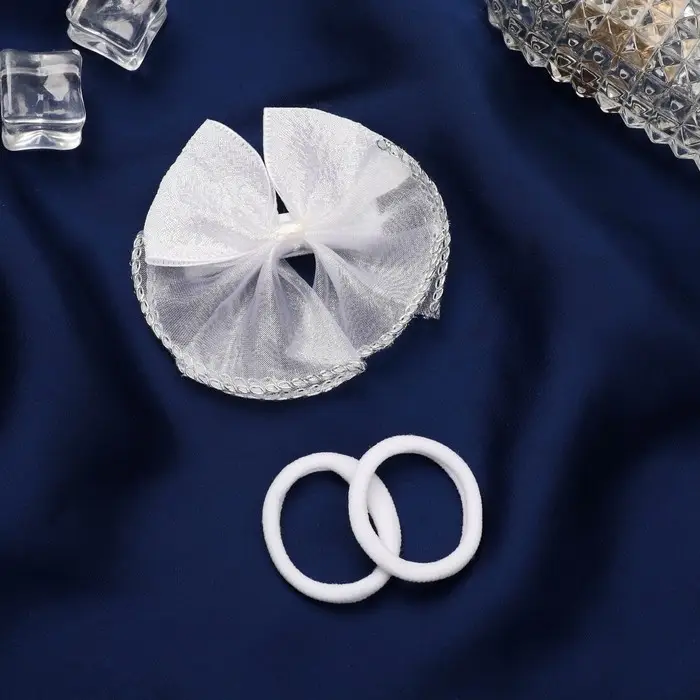 Набор для волос "Школьница" (зажим 7 см, 2 резинки 3,5 см) полупрозрачный бант, белый