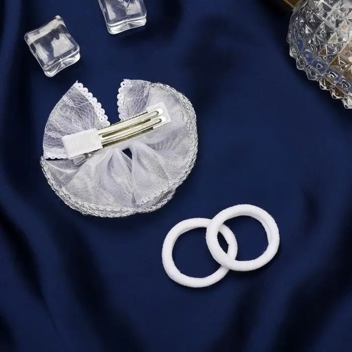 Набор для волос "Школьница" (зажим 7 см, 2 резинки 3,5 см) полоски бант, белый
