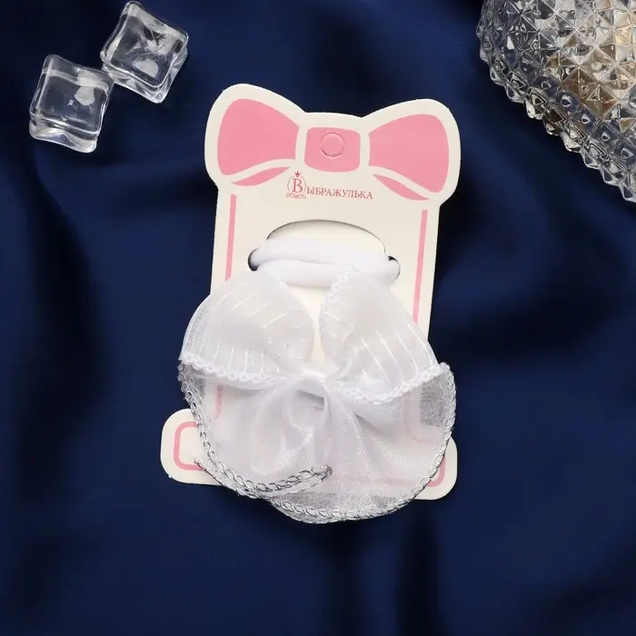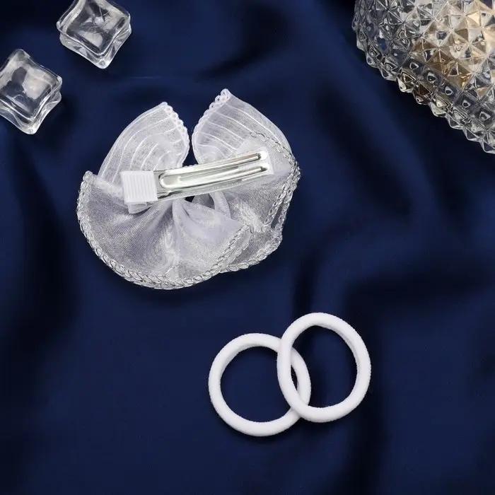 Набор для волос "Школьница" (зажим 7 см, 2 резинки 3,5 см) бант полосы, белый
