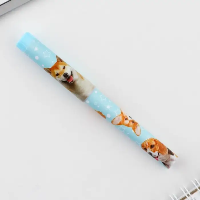 Ручка шариковая, синяя паста 0.7 мм с колпачком пластик «Пёсики»