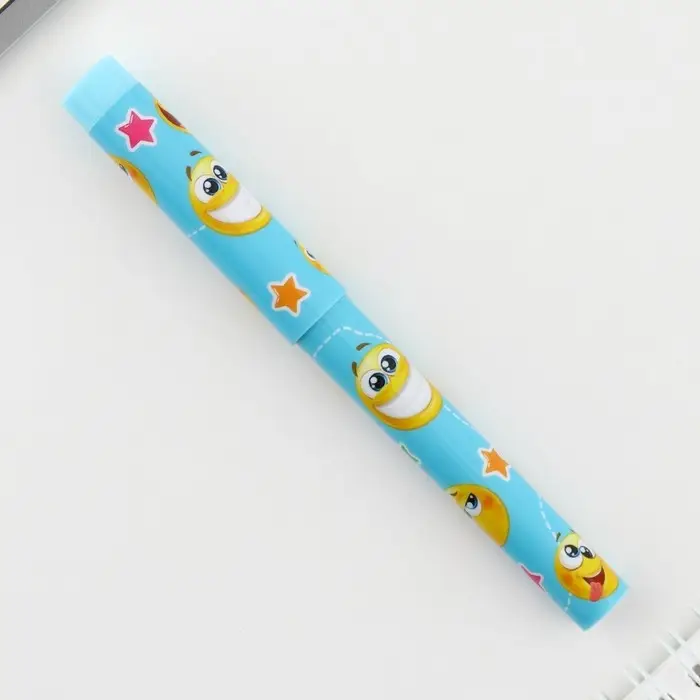 Ручка шариковая, синяя паста 0.7 мм, с колпачком, пластик «Смайлики»