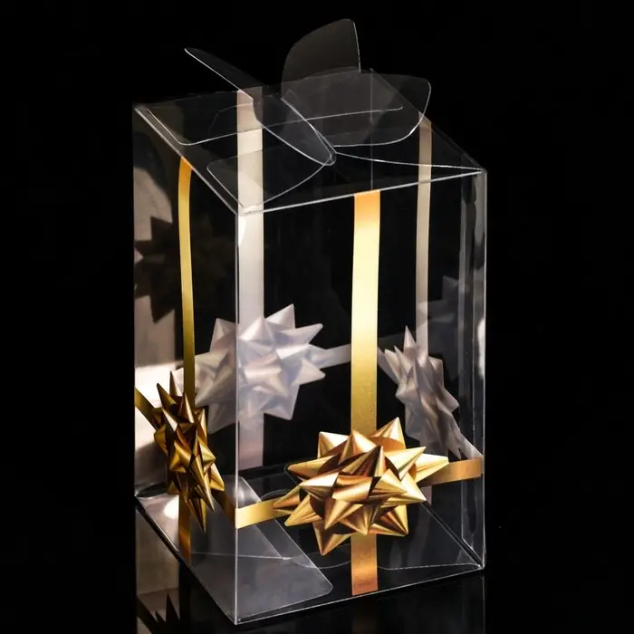 Складная прозрачная коробка из PVC, для упаковки подарков, «Золотой бантик», 6×6×10 см