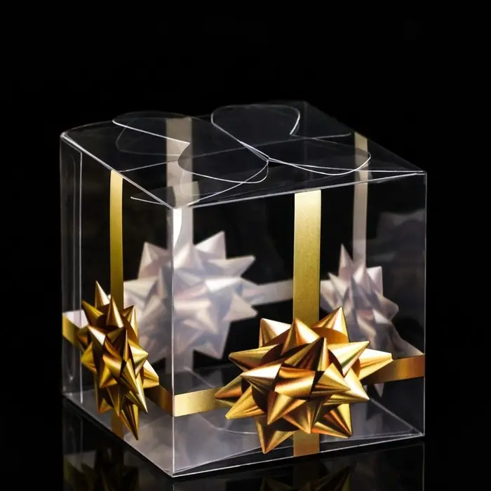 Складная прозрачная коробка из PVC, для упаковки подарков, «Золотой бантик», 7×7×7 см