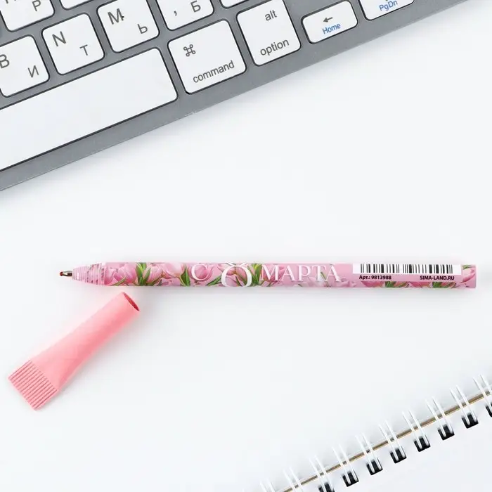 Ручка шариковая синяя паста, пластиковая с цветком "С 8 Марта"