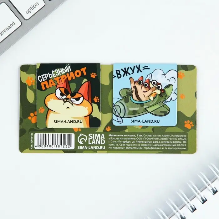Магнитные закладки для книг, 4 шт. в открытке «Юному герою, с 23 февраля!»