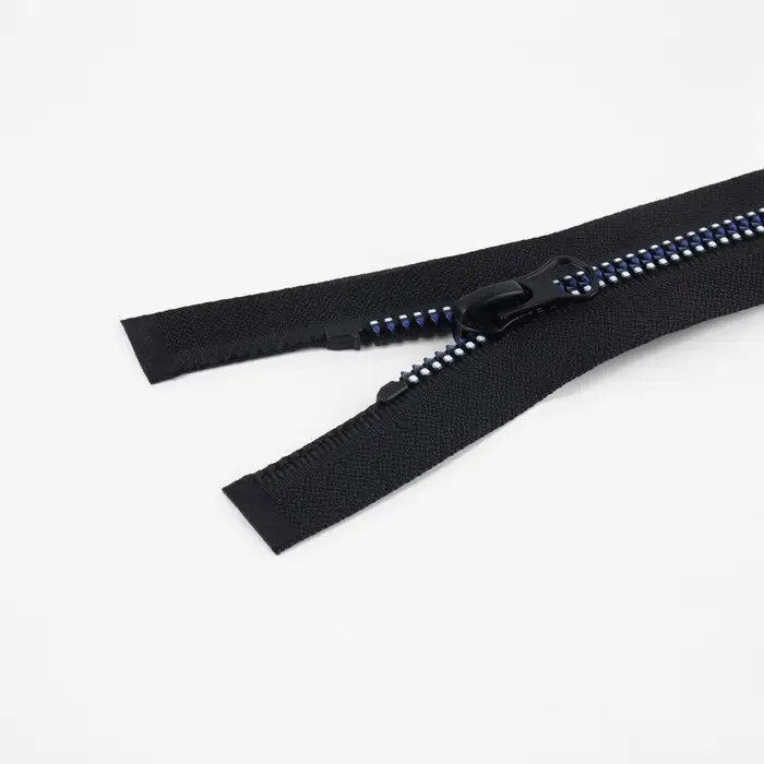 Пластиковые зубцы не истираются. Конструкция износостойкая, не выцветает. Бегунок плавно скользит по застёжке.