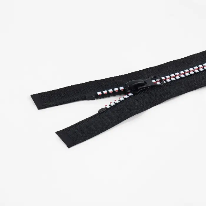 Пластиковые зубцы не истираются. Конструкция износостойкая, не выцветает. Бегунок плавно скользит по застёжке.
