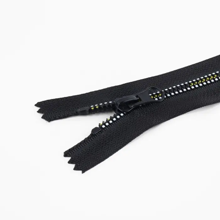 Пластиковые зубцы не истираются. Конструкция износостойкая, не выцветает. Бегунок плавно скользит по застёжке.