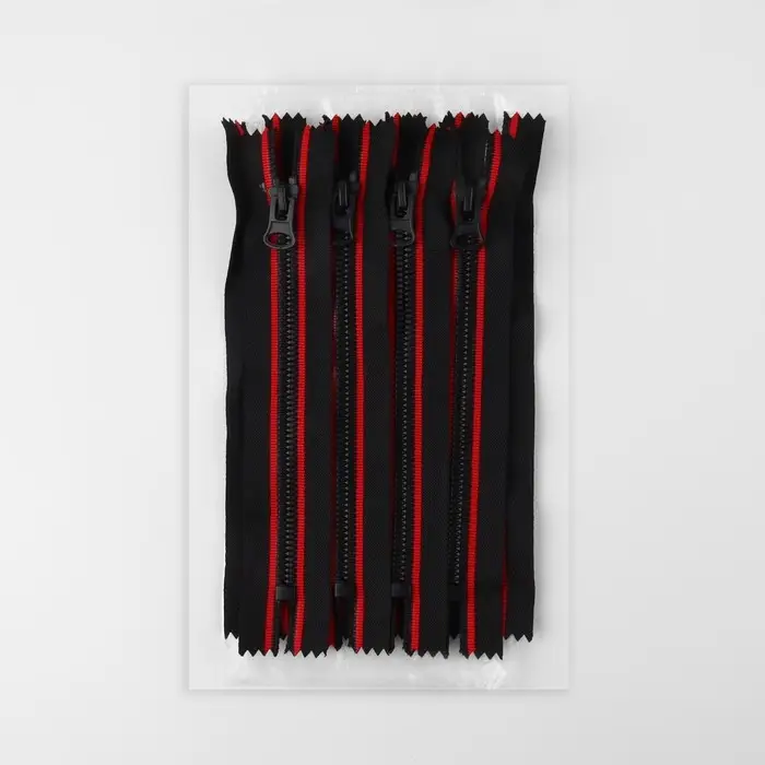 Молния «Трактор», №8, неразъёмная, замок автомат, 18 см, чёрная, красная