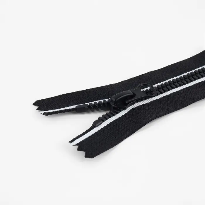 Пластиковые зубцы не истираются. Конструкция износостойкая, не выцветает. Бегунок плавно скользит по застёжке.