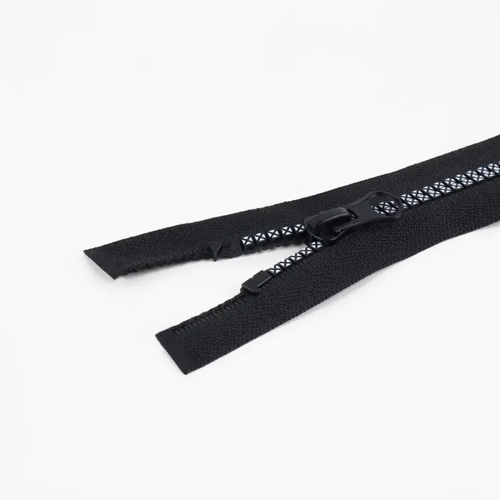 Пластиковые зубцы не истираются. Конструкция износостойкая, не выцветает. Бегунок плавно скользит по застёжке.