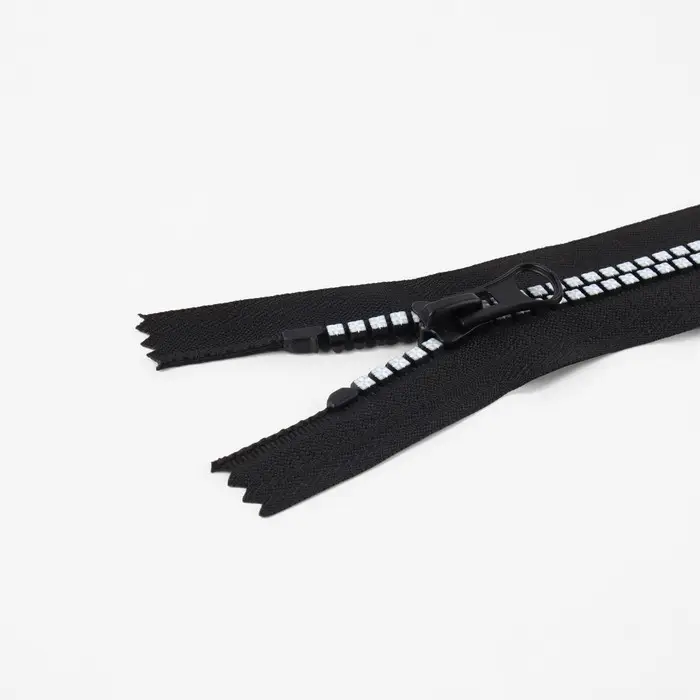Пластиковые зубцы не истираются. Конструкция износостойкая, не выцветает. Бегунок плавно скользит по застёжке.