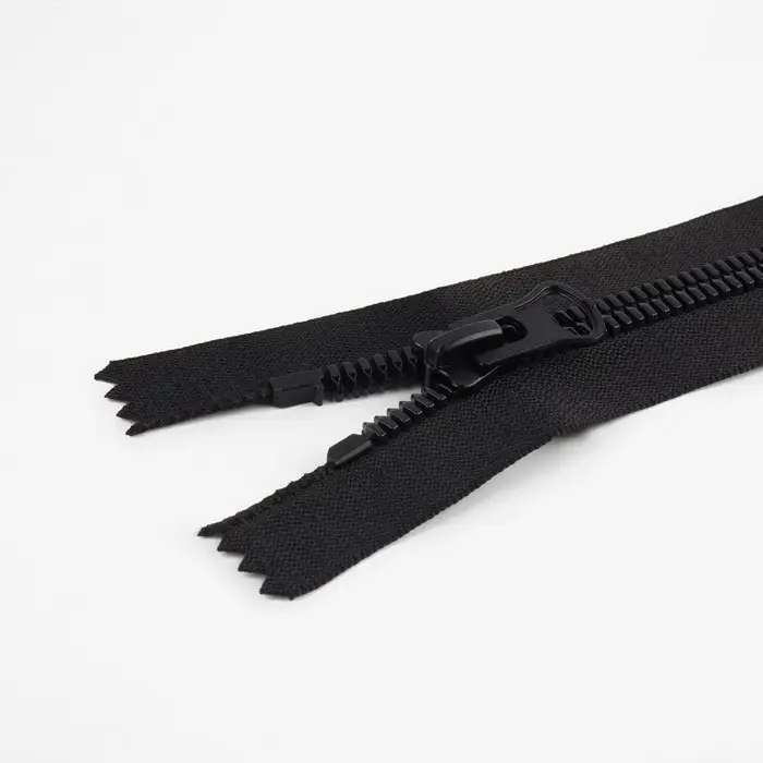 Пластиковые зубцы не истираются. Конструкция износостойкая, не выцветает. Бегунок плавно скользит по застёжке.
