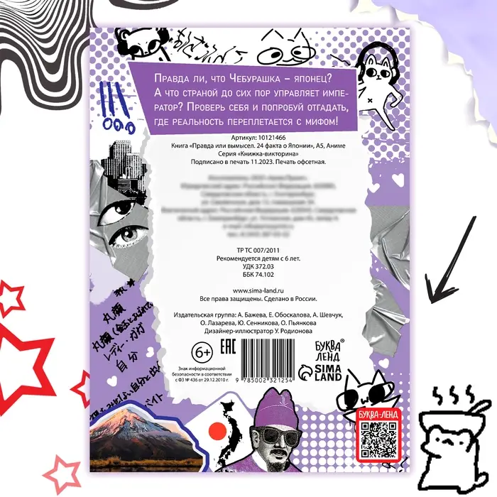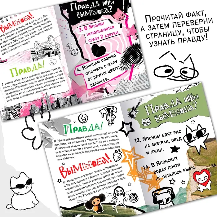 Книга «Правда или вымысел» позволит вам окунуться в культуру Японии. Внутри вы найдёте 20 вопросов и факты о культуре, обычаях и истории Японии. С данной книгой вы сможете не только расширить свой кругозор, но и весело провести время с друзьями, просто устройте увлекательную викторину: задавайте вопрос и собирайте голоса за каждый вариант.