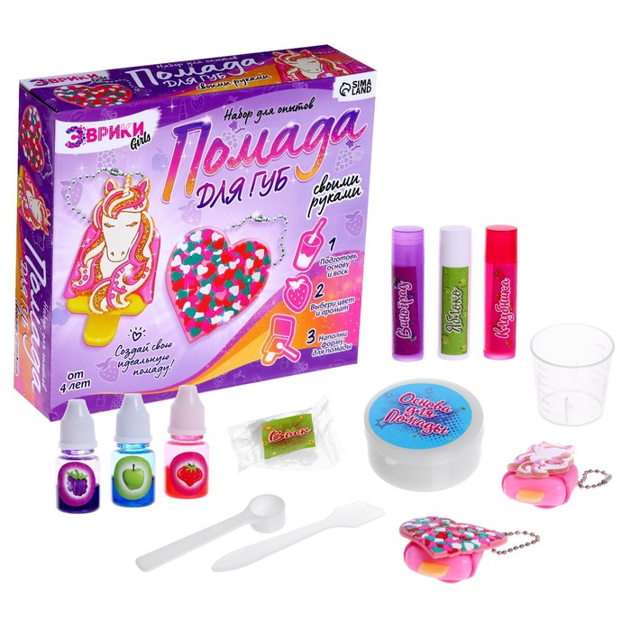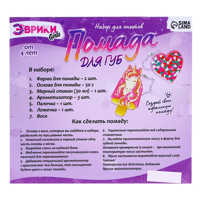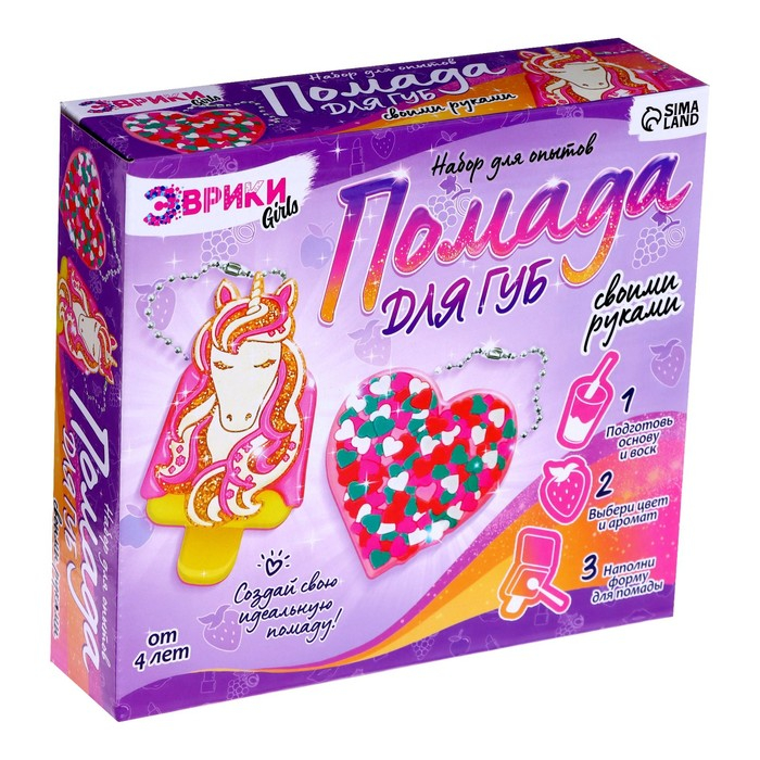 Опыты для девочек «Помада для губ», единорог и сердечко