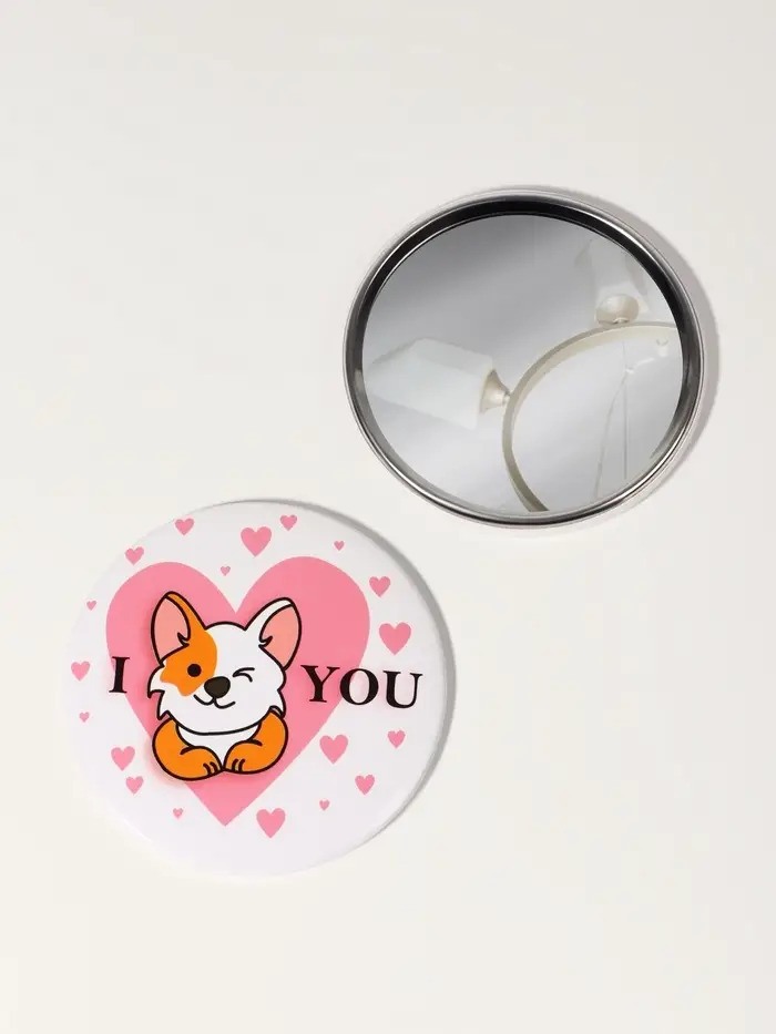 Зеркало карманное «Люблю корги», d=7 см, разноцветное