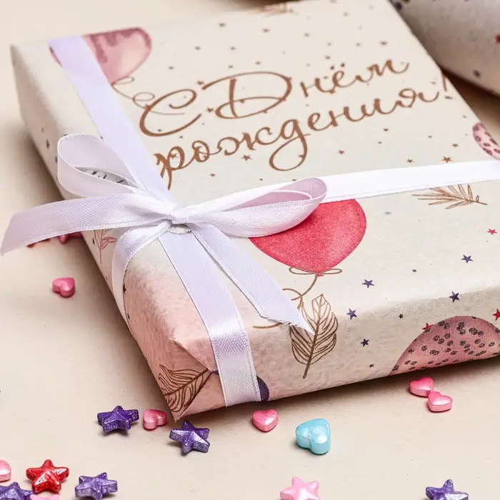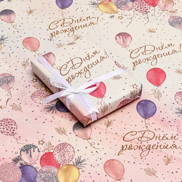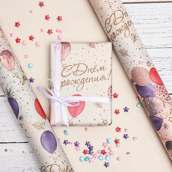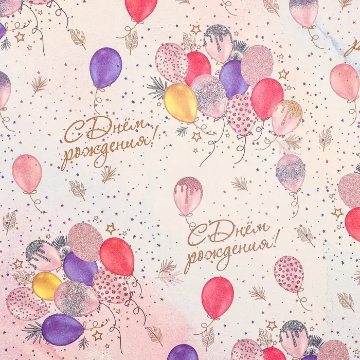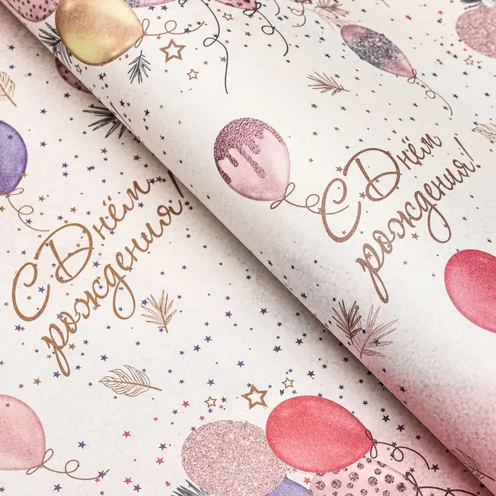 Бумага упаковочная, крафт «С Днем Рождения», 60×90 см