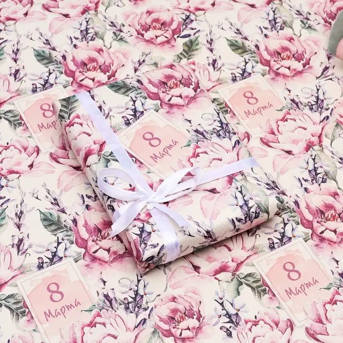 Бумага упаковочная, крафт «С 8 Марта! », 60×90 см