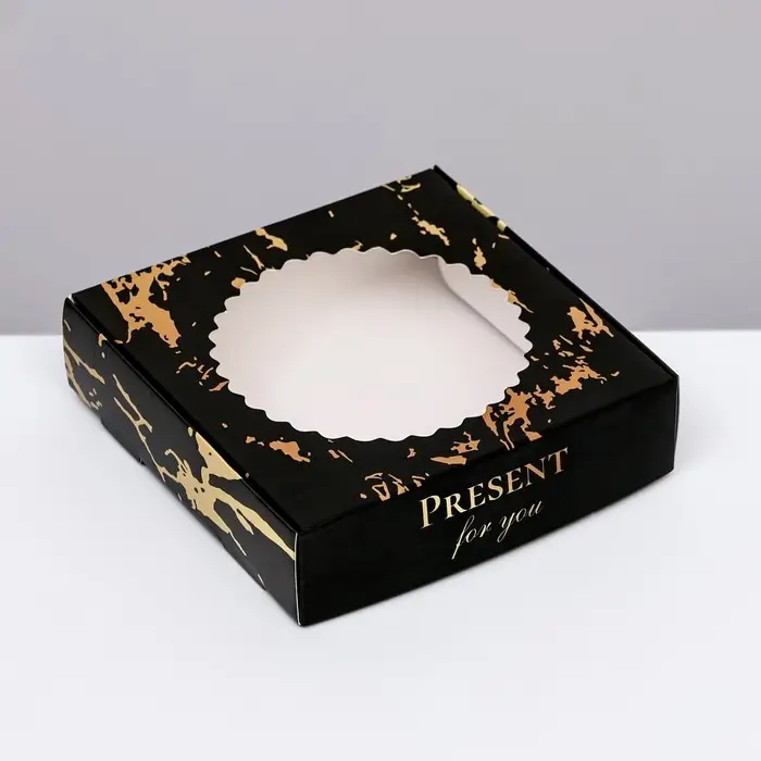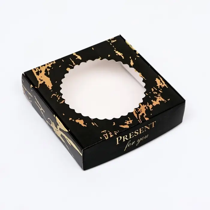 Коробка сборная с окном, «Презент», 11.5×11.5×3 см