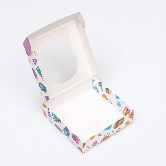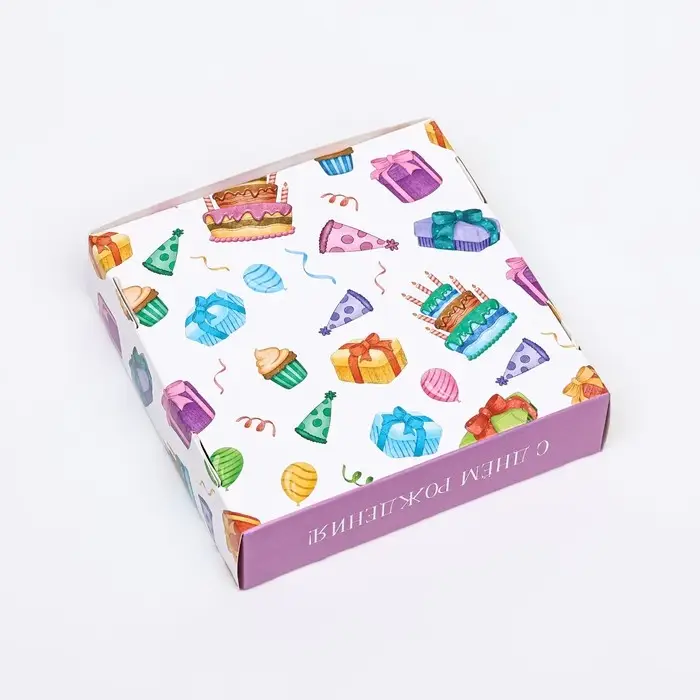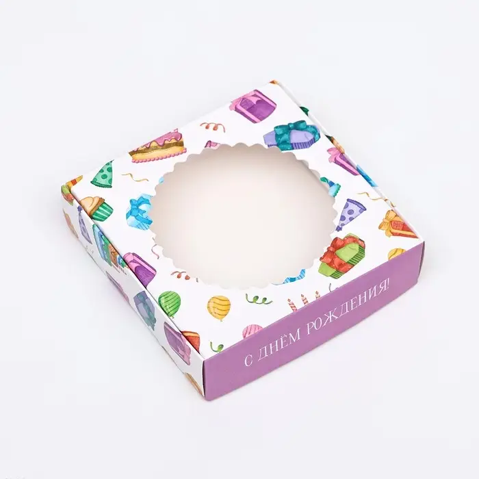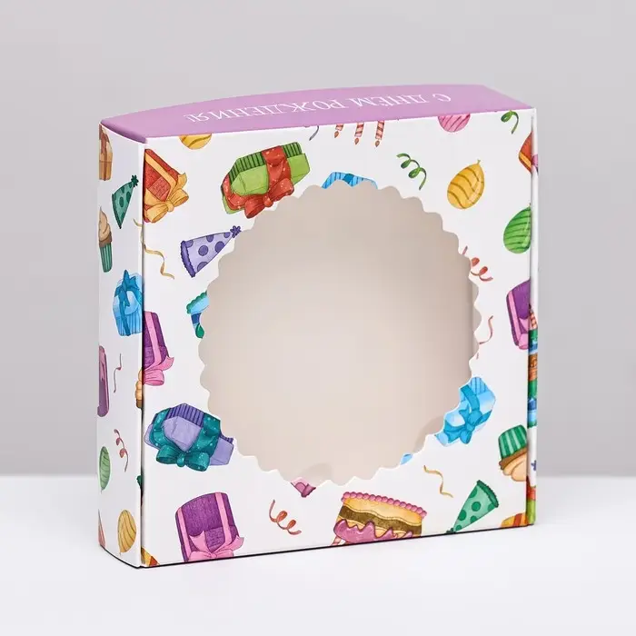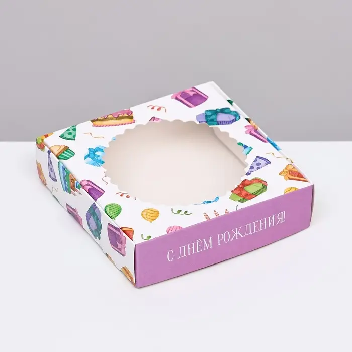 Коробка сборная с окном, «С Днем Рождения», 11.5×11.5×3 см